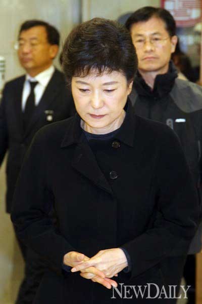 박 후보가 빈소에 조문을 하기 위해 들어가고 있다.