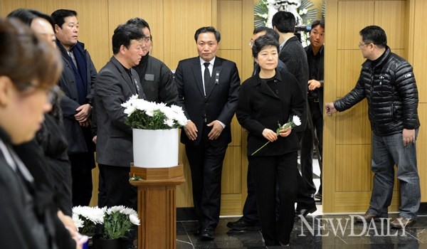 박 후보는 취재진의 질문에 답하지 않고 침통한 표정으로 빈소를 떠났다.