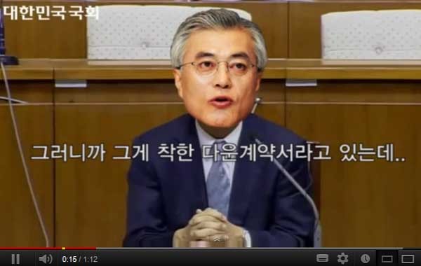 한 네티즌이 문재인 민주통합당 후보의 다운계약서와 지난 7월 김병화 대법관 후보 청문회를 합성해 만든 동영상이 화제다.