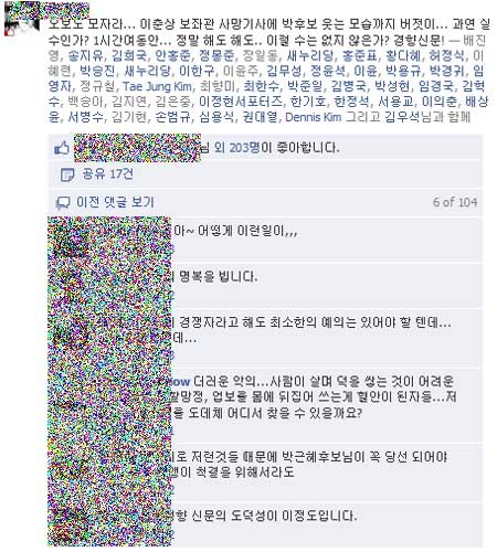 <경향>의 이런 보도를 본 네티즌들은 "해도해도 너무하다"는 반응 일색이다. 한 페이스북 사용자는 "과연 실수인가? 정말 해도해도 이럴 수는 없지 않느냐"고 비판했다. 그의 페이스북 친구들 또한 "아무리 경쟁자라 해도 최소한의 예의는 있어야 하는데…." "더러운 악의" "진보성향 신문의 도덕성이 이 정도"라며 경악과 분노를 금치 못하고 있다.