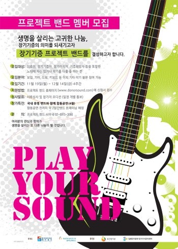 의료진, 기증자 및 가족, 기증희망자 등 장기이식 관계자를 주축으로 하는 장기기증 생명나눔 프로젝트 밴드 ‘도너사운드’가 멤버를 공개 모집한다.