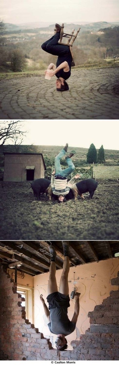 그는 자신이 모델로 나서서 전세계를 여행하며 작품 속에서 물구나무를 선다.