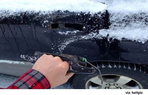 사진을 공개한 미국의 한 네티즌은 겨울 아침 자동차 문을 열다가 이런 ‘사고’를 쳤다고 전했다.