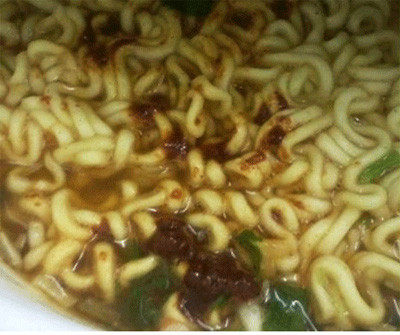 공개된 사진 속에는 컵라면 면발 위에 덜 풀어진 스프 덩어리가 뭉쳐 있어 네티즌들의 공감을 사고 있다.