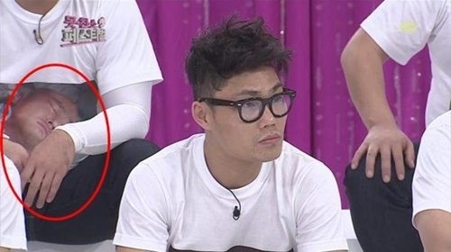 리쌍의 멤버 길이 방송 중 자고 있는 듯한 착시 사진이 포착됐다.
