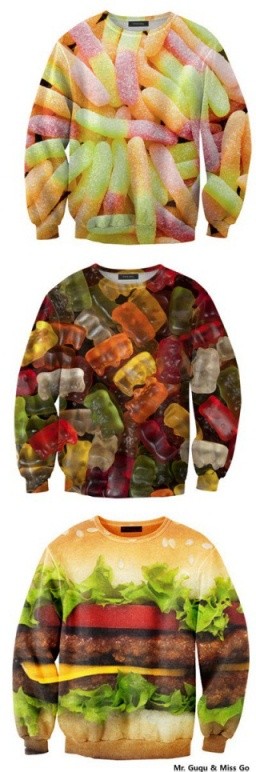스웨터에는 감자튀김, 햄버거, 팝콘, 젤리 등이 선명하게 새겨져 있다. 자신이 좋아하는 음식으로 선택 가능하다.