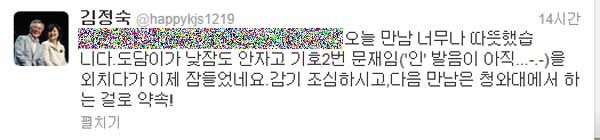 그러나 확인 결과, 이 발언을 남긴 분은 김정숙 씨가 아닌, 일반인 지지자로 확인됐으므로 이를 정정합니다. 김정숙 씨와 지지자 분께 혼선을 끼쳐 드린 점 사과드립니다.