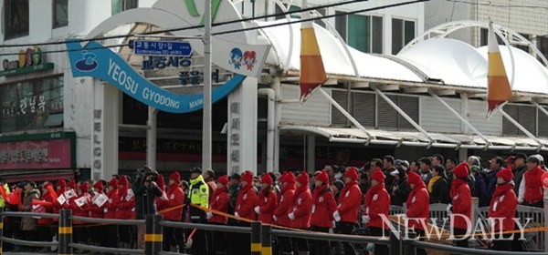 새누리당 박근혜 대선 후보가 5일 전남 여수시 서시장과 순천시 웃시장을 방문해 지지를 호소했다.