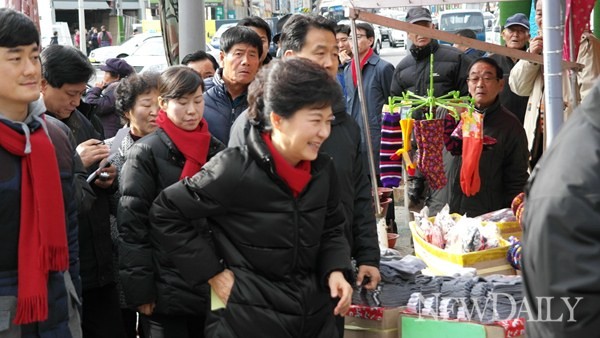 새누리당 박근혜 대선 후보가 5일 전남 여수시 서시장과 순천시 웃시장을 방문해 지지를 호소했다.