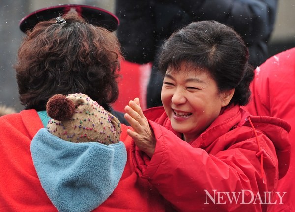 새누리당 박근혜 대통령 후보가 7일 서울시 동대문구 청량리역 앞 광장에서 구세군 자선냄비 기부 및 봉사를 펼쳤다.