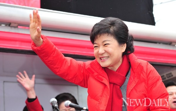 새누리당 박근혜 대통령 후보가 7일 오전 서울 송파구 마천시장에서 공식선거운동 11일차 첫 유세를 했다.