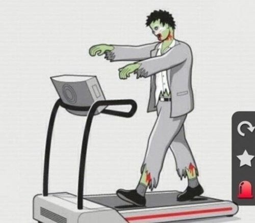 화제의 게시물에는 좀비로 추청되는 한 남자가 런닝머신 위를 걷고 있는 모습이 담겨 있다.