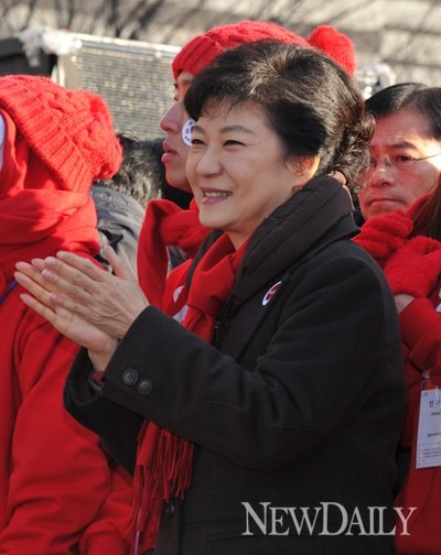 새누리당 박근혜 대통령 후보는 8일 오후 서울 광화문광장에서 서울지역 합동유세 '박근혜의 행복 연가'에 참석해 유세를 이어갔다.