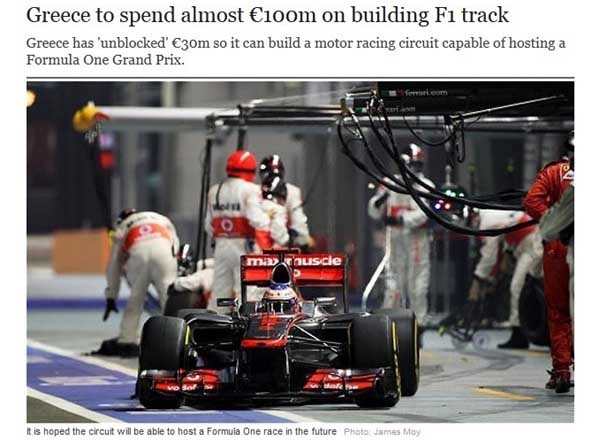 논란이 되고 있는 내용은 그리스의 F1 경기장 건설.