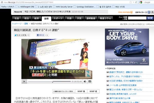 그런데 마침 그 중 한 사람이 '일베' 사이트를 들여다보는 모습이 잡혔다(http://news.tbs.co.jp/20121208/newseye/tbs_newseye5202157.html)