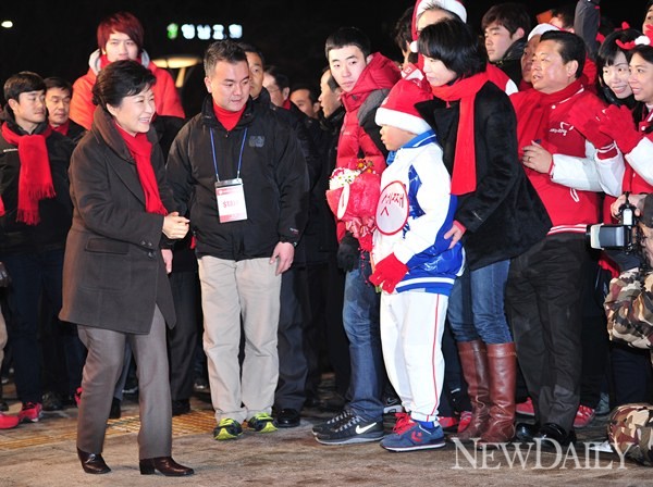 새누리당 박근혜 대통령 후보는 11일 오후 서울 영등포구 타임스퀘어 앞에서 합동유세를 펼쳤다.