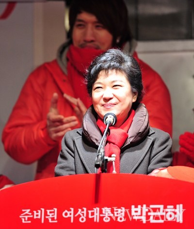 새누리당 박근혜 대통령 후보는 11일 오후 서울 영등포구 타임스퀘어 앞에서 합동유세를 펼쳤다.