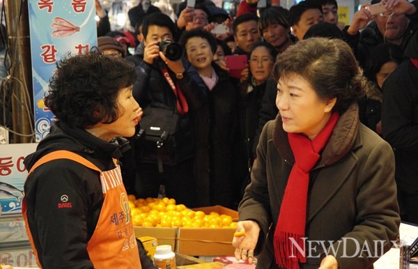 새누리당 박근혜 대통령 후보는 11일 오후 제주시 이도2동 제주시청 앞에서 ‘세상을 바꾸는 약속투어’ 유세를 이어갔다.