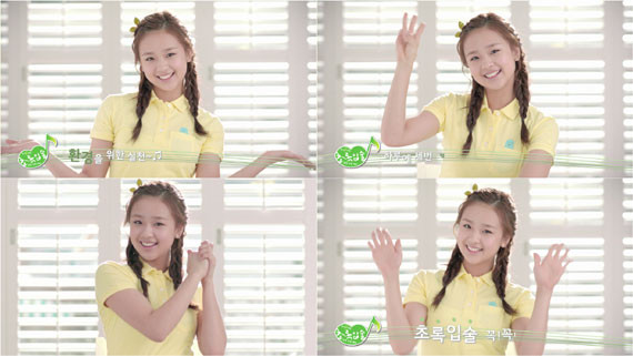 한편, 손연재의 귀요미 율동이 담긴 '녹색식생활 초록입술 영상'은 유튜브와 네이트 판 등의 온라인 동영상 사이트, 그리고 녹색식생활 캠페인 블로그에서 만나볼 수 있다.[사진 출처=녹색식생활 초록입술 캠페인송 영상 캡쳐]