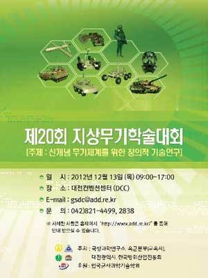 국방과학연구소(ADD, 소장 백홍열)는 13일 대전컨벤션센터에서 ‘신개념 무기체계를 위한 창의적 기술연구’를 주제로 ‘제20회 지상무기 학술대회’를 개최했다.
