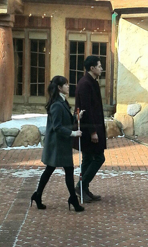 극 중 갑자기 찾아온 시각장애로 고통 받는 대기업 상속녀 오영 역을 맡은 송혜교는 한 손에는 시각장애인용 지팡이를 들고 다른 한 손으로는 조인성의 한쪽 팔을 잡고 길을 걸어가고 있다.