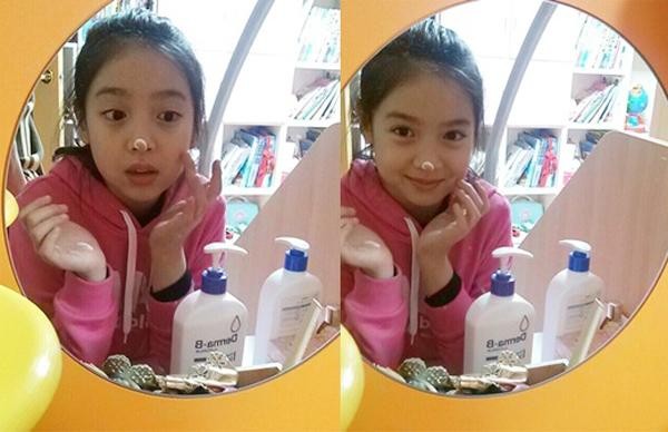 김수정은 코에 로션을 바르고 귀여운 표정을 짓고 있지만, 이전의 모습보다 부쩍 성숙해진 느낌이다.