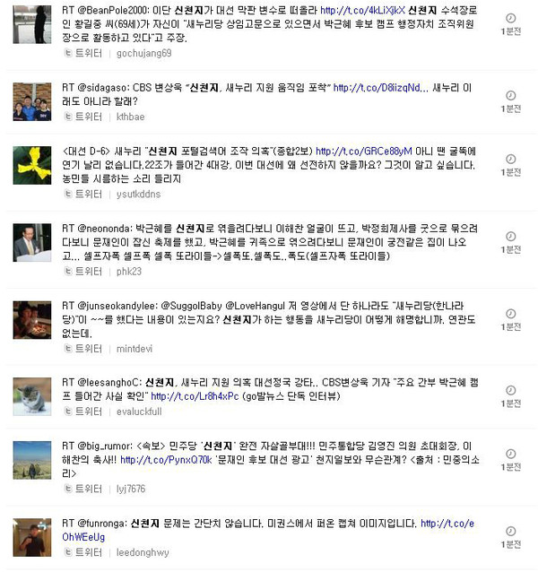 그런데도 박근혜 후보를 신천지와 연결 지어 흠집 내는 내용의 트윗을 유포한 ‘나꼼수’의 김용민씨를 서울 남부지검에 고발했다.