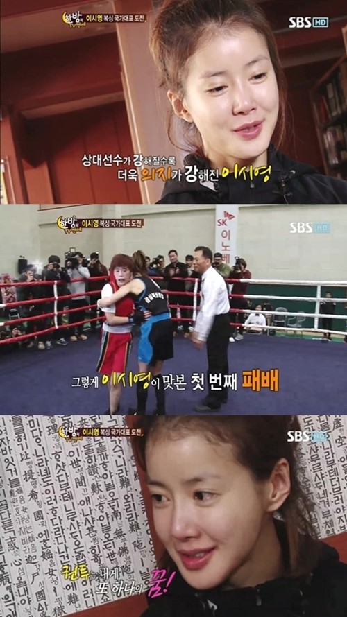 배우 이시영이 복싱을 하는 이유에 대해 털어놨다.2013년 국가대표 선발 준우승에 오른 이시영은 12일 방송된 SBS ‘한밤의 TV연예’에 출연해 복싱의 매력을 밝히며 계속하는 이유를 고백했다.