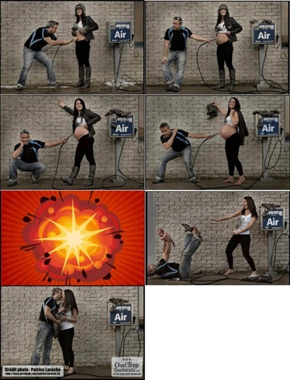 공개된 사진은 임신과 출산의 과정을 사진 7 장으로 표현한 것. 남편과 아내는 임신을 공기 주입기를 배에 대고 여성의 배가 불러오는 모습을 보며 즐거워하는 모습이 담겨있다.