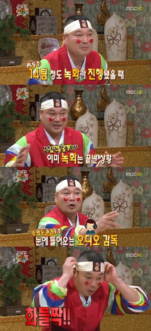 이미 녹화가 6시간 이상 진행돼 방송 분량이 충분히 확보된 상황에서 뒤늦게 녹음이 되지 않았다는 사실을 알게 된 오디오 감독과 연출 PD는 얼굴이 시퍼렇게 질렸다. 이 사실을 알게 된 MC 강호동은 "이게 뭐꼬! 이게 뭐란 말이고!"라고 크게 소리치며 엄청나게 화를 냈었다는 게 전현무의 설명이다.