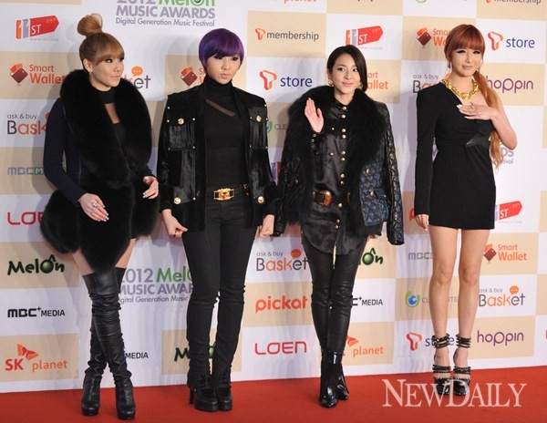 14일 오후 올림픽공원 체조경기장에서 열린 '2012 멜론 뮤직 어워드 (Melon Music Awards 2012)에서 투애니원이 포즈를 취하고 있다.