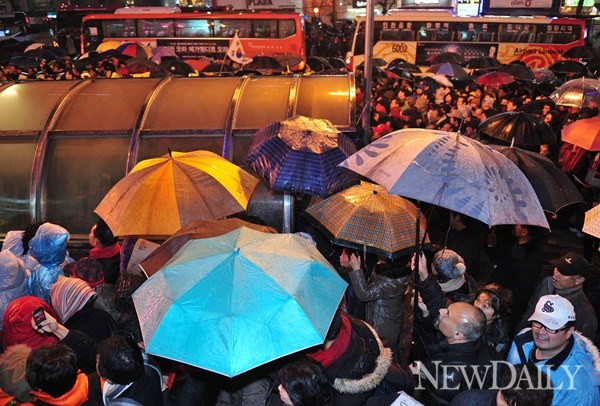 [포토]D-5, 비오는 날씨 불구..유세현장 찾은 시민들