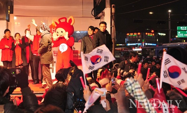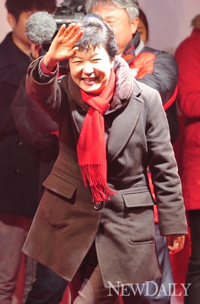 새누리당 박근혜 대통령 후보는 14일 오후 서울 신촌오거리에서 공식선거운동 19일차 마지막 합동유세를 가졌다.