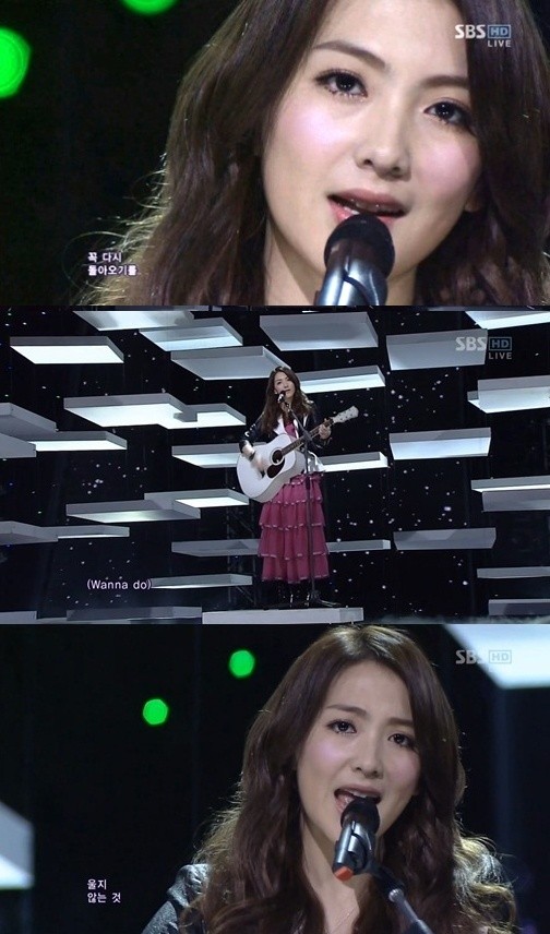 이날 어쿠스틱 기타를 들고 무대에 오른 강지영은 그간 카라에서 보여주던 모습과 달리 직접 기타 연주를 하며 애절하고 풍부한 음색과 청순한 매력을 발산, 단번에 이목을 사로잡았다.