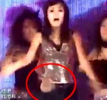 노래를 잘 부르던 아유미가 갑자기 자신의 의상을 손으로 가리는 행동을 취한 것.알고보니 아유미가 너무 열정적으로 '털기춤'을 춘 나머지 가슴에 부착했던 가슴 패드가 떨어진 것으로 밝혀졌다.