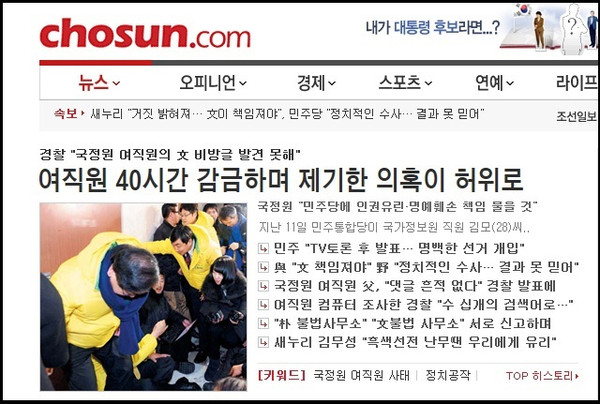 민주통합당이 불법적으로 문재인 후보에게 비방댓글을 달았다고 약 3일이나 감금당한 국정원 여직원의 컴퓨터에는 그런 댓글을 단 흔적이 하나도 없었다고 16일 밤 경찰은 발표했다.