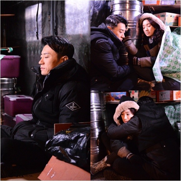 공개된 사진 속 김명민(앤서니김 분)은 처음에는 추위에 담담한 모습을 보이다가 서서히 정려원(이고은 분) 곁으로 다가가 정려원과 함께 따뜻한 국통을 끌어안고 추위를 달래는 모습이다. 또, 더 나아가서는 서로를 부둥켜안고 체온을 나누고 있어 웃음을 자아낸다.