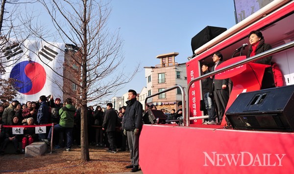 새누리당 박근혜 대통령 후보는 17일 오후 화성시 개나리 공원 앞에서'세상을 바꾸는 약속투어'를 이어갔다