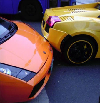 공개된 사진에는 람보르기니 두 대의 접촉사고 현장이 찍혀있다.