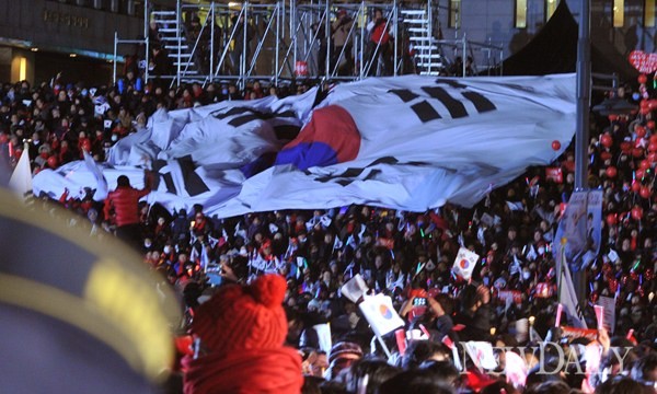 [포토]D-1, 박근혜 후보 유세 현장에 등장한 대형 태극기