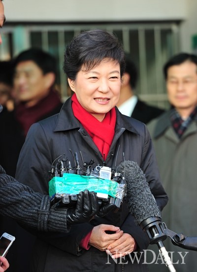 새누리당 박근혜 대통령 후보가 대통령 선거일인 19일 오전 8시께 서울 강남구 언주중학교에서 투표를 실시했다.