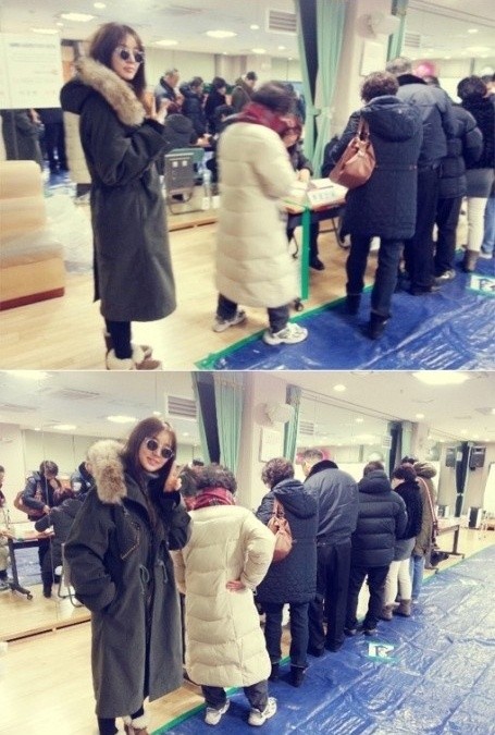 문제는 윤은혜가 자신이 투표하는 모습을 담은 '인증샷'을 트위터에 올린 것.