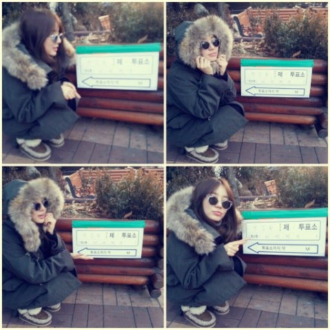 "촬영장 가기전에 투표 완료 !! 인증샷 찍을 만한 장소가.. 불쌍하게 찰칵! 많이 추워용~ 저처럼 옷 따습게 입고 나오셔요."