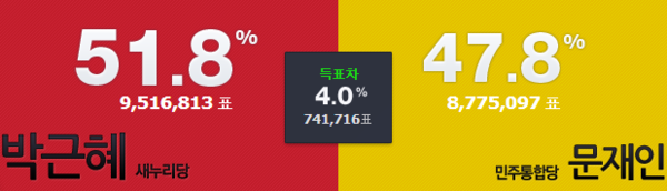 제18대 대통령 선거에서 박근혜 새누리당 대선 후보의 당선이 확실시되고 있다.