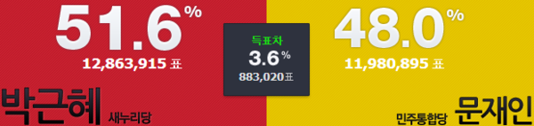 제18대 대통령 선거에서 박근혜 새누리당 대선 후보의 당선이 확실시되고 있다.
