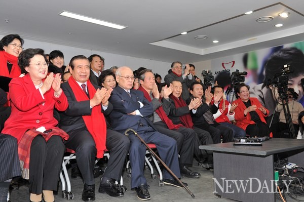 • 제18대 대통령선거 투표가 끝난 19일 새누리당 인사들이 서울 여의도 새누리당 당사에서 출구조사 결과를 지켜보고 있다.