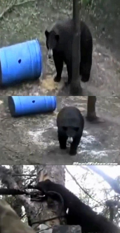 곰은 나무 밑 땅에서 주위를 서성거리다 인기척을 눈치채곤 갑자기 빠른 속도로 달리기 시작한다. 이어 카메라 앵글이 흔들리더니 남성 뒤로 곰이 나무를 이미 올라타 있어 보는 이들을 깜짝 놀라게 했다. 이는 불과 몇 초만에 일어난 일이다.