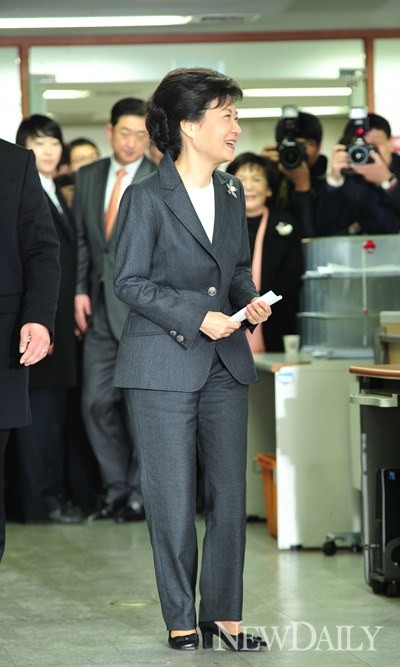 새누리당 박근혜 대통령 당선인이 20일 오전 서울 여의도 새누리당 당사에서 '대국민 인사'를 했다.