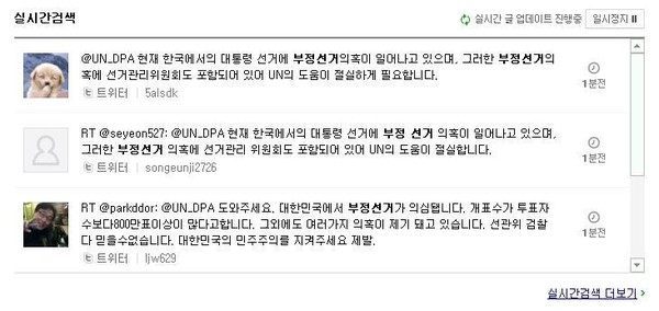 한발 더 나아가 일부 네티즌들은 트위터와 인터넷 카페, 블로그 등에 'UN선거감시단 파견 요청 방법'이란 제목의 게시물을 올려놓고 적극적인 참여를 독려하고 있다.