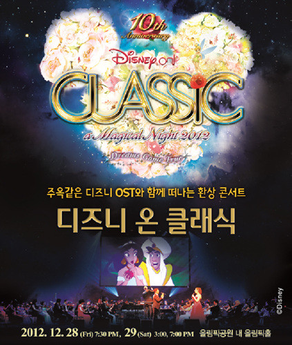 디즈니 온 클래식은 오는 28~29일 양일간 진행되며 올림픽공원 내 올림픽홀에서 개최된다. 티켓 예약은 온라인, 오프라인을 통해 가능하다.